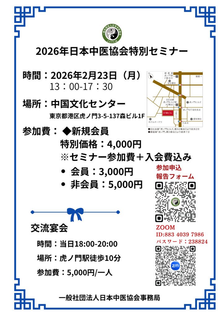 **「2026年 日本中医協会 特別セミナー」**を開催いたします。